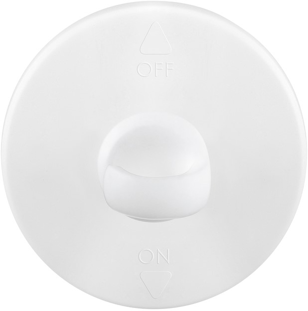 De witte kunststof plafondhaak heeft een draaiende haakkop.