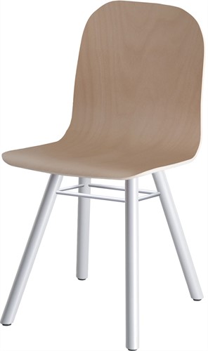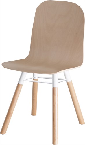 De stoel is verkrijgbaar in verschillende materialen en kleuren.