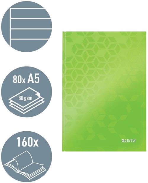 Notitieboek Leitz WOW A5 160blz 90gr lijn ijsblauw