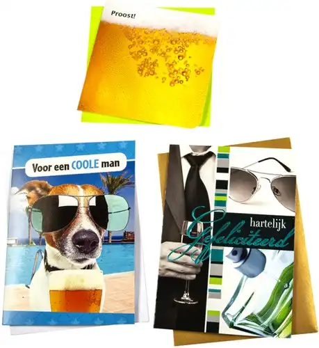Wenskaart Paperclip verjaardag man navulset à 6 stuks