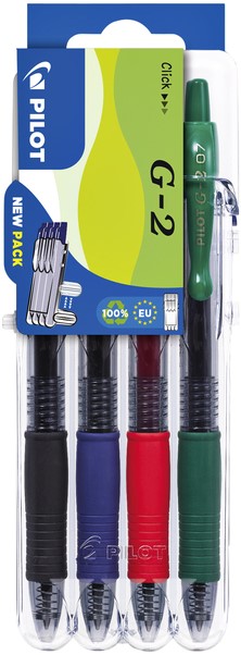Gelschrijver Pilot clicker medium basis assorti Set2Go à 4 stuks