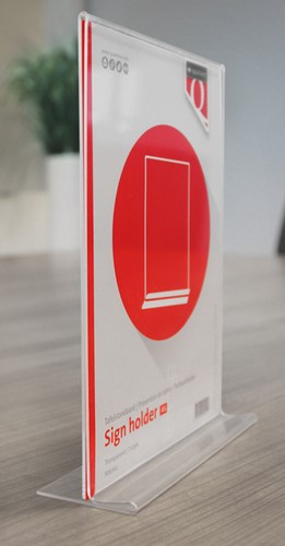 Met de kaarthouder van Quantore A5 T-staand presenteer je flyers, mededelingen of kleine posters altijd netjes en professioneel. De transparante houder is gemaakt van stevig polystyreen en zorgt ervoor dat je boodschap aan beide zijden perfect zichtbaar is, terwijl deze beschermd blijft tegen stof en vuil. Dankzij de opening aan de onderkant plaats je flyers eenvoudig en blijven ze netjes op hun plek. De stabiele onderkant garandeert dat de houder stevig staat op tafels, balies of toonbanken. Ideaal voor kantoren, winkels, horecagelegenheden en beurzen. kenmerken: