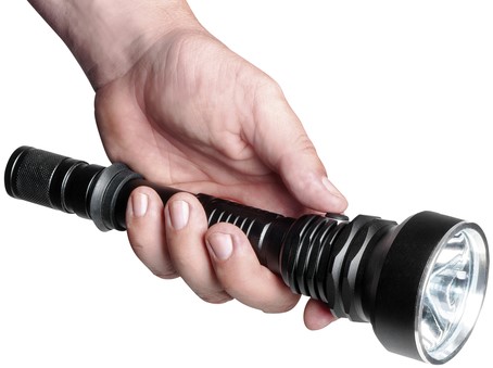 De zaklamp verstuurt lichtsignalen die in de morsecode S-O-S weergeven.