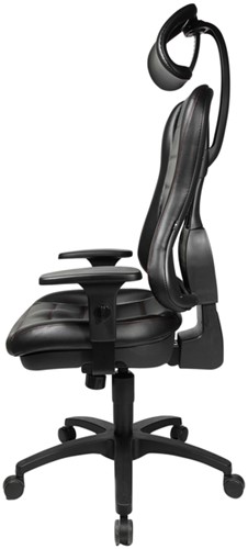 Sportieve bureaustoel met een ergonomisch, contourvormig in hoogte verstelbare rugleuning.