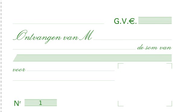 Wordt gebruikt om een ontvangstbewijs zonder vermelding van BTW te geven, met behoud van een kopie.