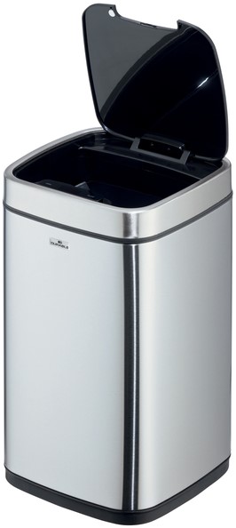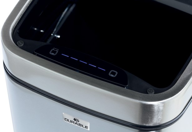 Hoogwaardige afvalbak met sensortechnologie, voorzien van een binnenemmer van 12 liter.