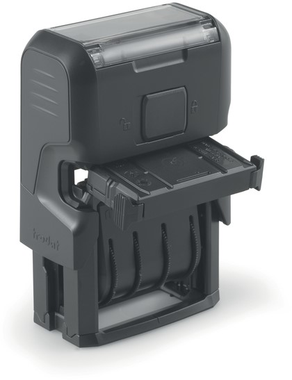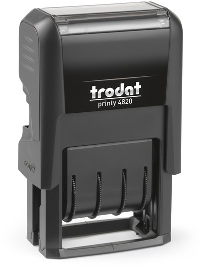 Trodat Printy™ 4820, datumstempel met maanden in cijfers en zwarte inkt.
