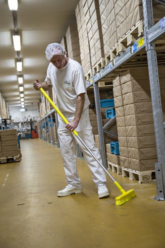 Deze bezem is ontworpen om meel, zetmeel en andere poeders effectief uit droge gebieden te vegen.