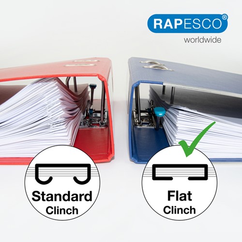 De nietmachine wordt gebruiksklaar geleverd met twee dozen Rapesco 24/6mm nietjes.