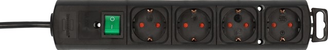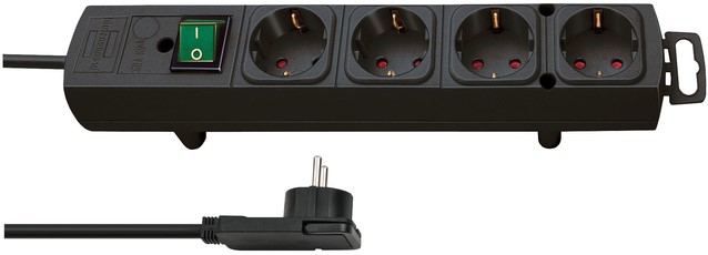 Comfort-Line Plus stekkerdoos met randaarde en met platte stekker 4-voudig zwart H05VV-F 3G1,5