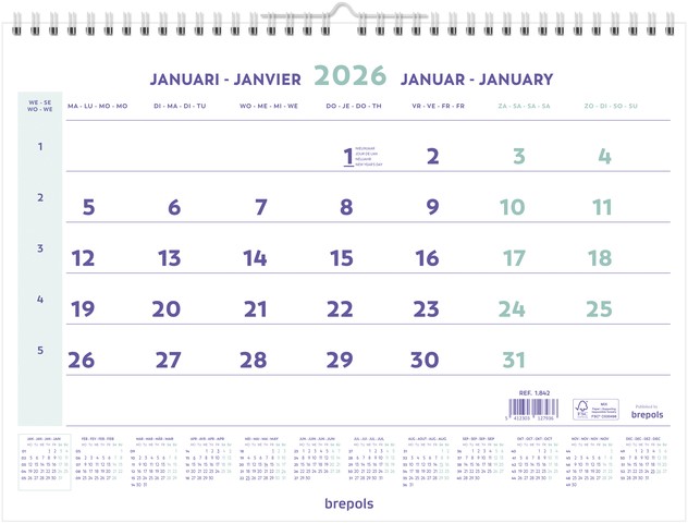 1-Maandskalender 2026 Brepols 43x31.5cm