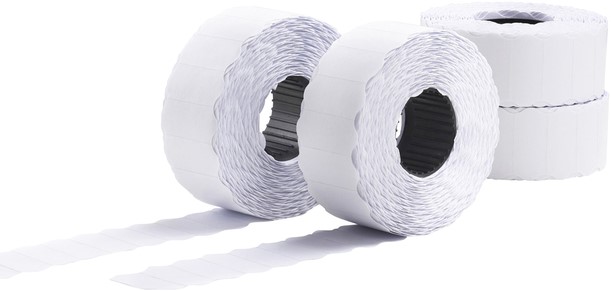 Permanent klevende witte etiketten voor 2-regelige prijstang (PL2/18) van Avery.