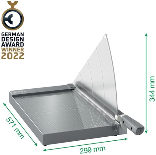Hoogwaardige Leitz snijmachine met 5 jaar garantie (normale slijtageonderdelen en accessoires uitgezonderd).