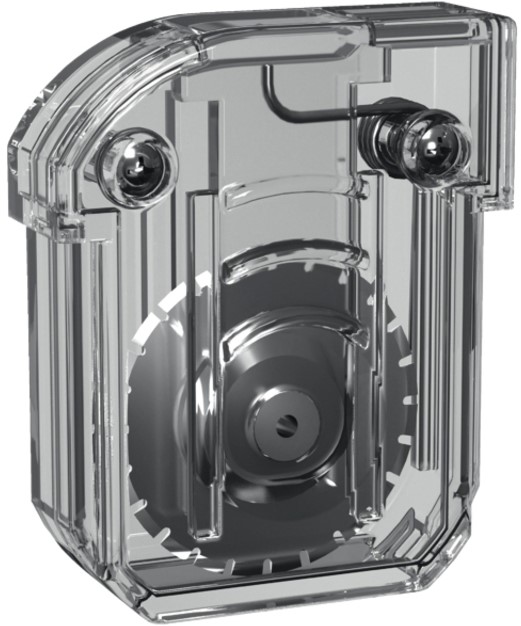 Circulair roterend mes is veilig omsloten in een kunststof cartridge.