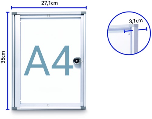 Binnenvitrine wand MAULextraslim whiteboard 4xA4 met slot