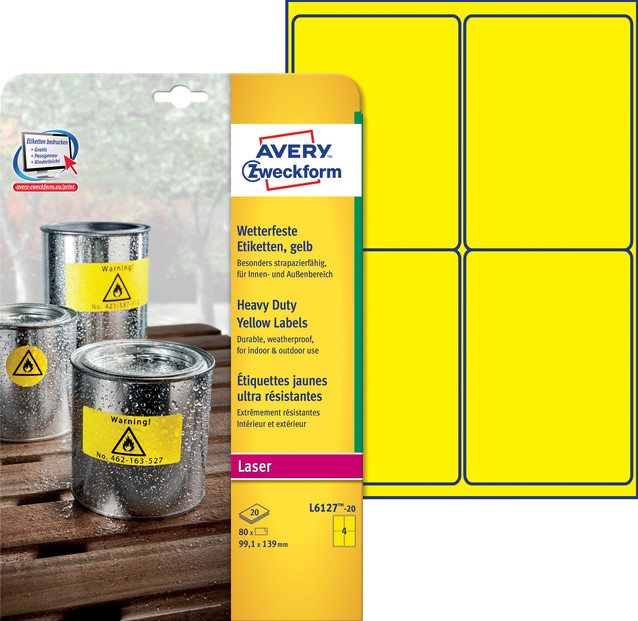 Etiket Avery L6127-20 99.1x139mm geel 80 stuks