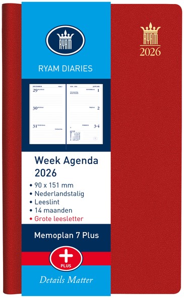 Agenda 2026 Ryam Weekplan Plus Mundior groot letter 7dagen/2pagina's assorti