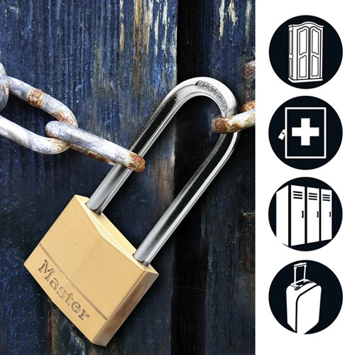 Het Master Lock No. 140EURDLH Solid Brass hangslot heeft een 40mm breed massief messing slothuis dat sterk en duurzaam is en bestand tegen corrosie.