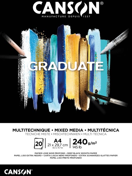 Mixed mediapapier Canson Graduate Mixed Media 20vel 240gr A3 zwart