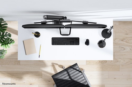 De arm is voorzien van gasgeveerde hoogteverstelling (27,7-56 cm) en diepteverstelling (0-50,5 cm), VESA quickrelease, 180°-stopmechanisme, waardoor deze goed bij een akoestische wand gebruikt kan worden, standaard uitgerust met een platte topfixklem en bureaudoorvoer en incl.
