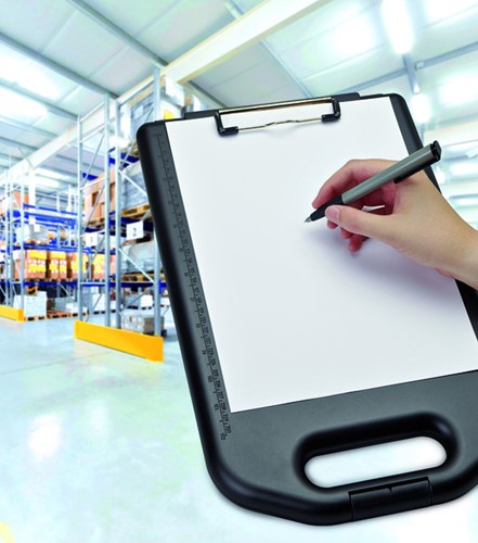 Robuuste PP klembordkoffer, formulierenhouder, met praktisch apart opbergvak gecombineerd.