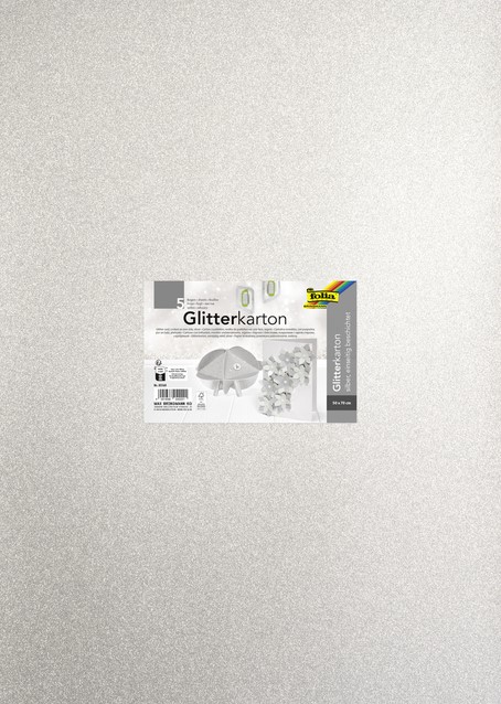Glitterkarton Folia 50x70cm 300gr 5 vel zilver