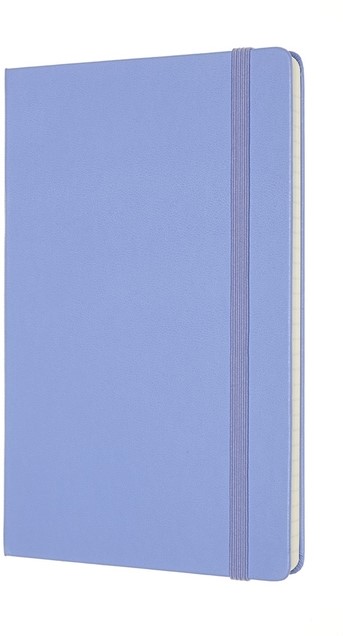 Kenmerken: afgeronde hoeken, elastische sluiting, ivoorkleurig Moleskine-papier, bijpassend leeslint, papier: 70 gsm, zuurvrij, “In geval van verlies”-label op het schutblad, uitbreidbaar binnenvak op achterkaft.