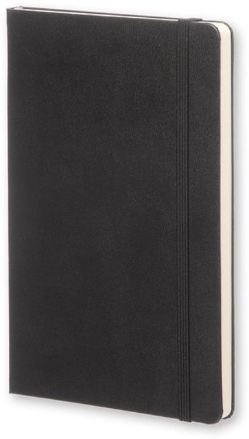 Kenmerken: afgeronde hoeken, elastische sluiting, ivoorkleurig Moleskine-papier, bijpassend leeslint, papier: 70 gsm, zuurvrij, “In geval van verlies”-label op het schutblad, uitbreidbaar binnenvak op achterkaft.