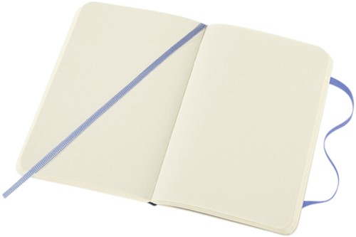 Kenmerken: afgeronde hoeken, elastische sluiting, ivoorkleurig Moleskine-papier, bijpassend leeslint, papier: 70 gsm, zuurvrij, “In geval van verlies”-label op het schutblad, uitbreidbaar binnenvak op achterkaft.