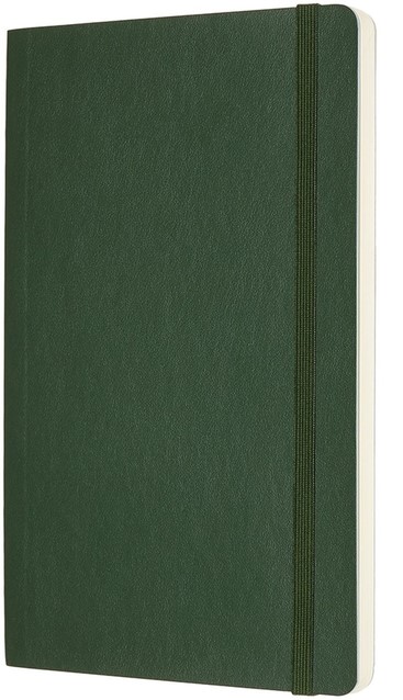 Kenmerken: afgeronde hoeken, elastische sluiting, ivoorkleurig Moleskine-papier, bijpassend leeslint, papier: 70 gsm, zuurvrij, “In geval van verlies”-label op het schutblad, uitbreidbaar binnenvak op achterkaft.