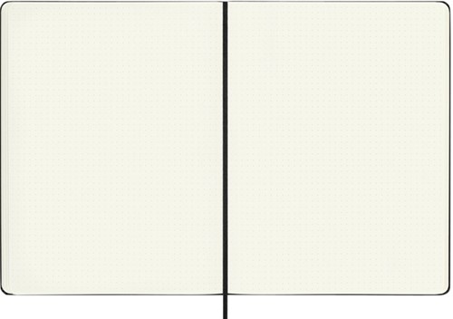 Kenmerken: afgeronde hoeken, elastische sluiting, ivoorkleurig Moleskine-papier, bijpassend leeslint, papier: 70 gsm, zuurvrij, “In geval van verlies”-label op het schutblad, uitbreidbaar binnenvak op achterkaft.