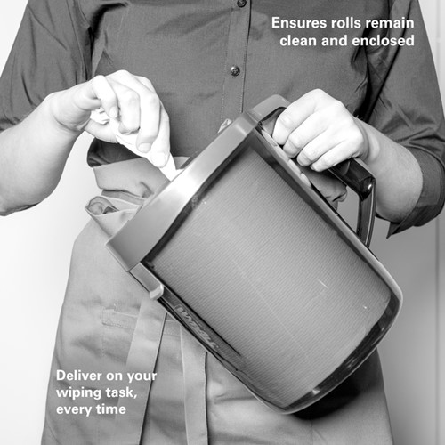 De WypAll Reach-centerfeed dispenser is een draagbare poetsdoek dispenser met afgifte van steeds één vel tegelijk die is ontworpen voor gecontroleerd gebruik van onze centerfeed rollen voor horeca, persoonlijke verzorging, de detailhandel en serviceomgevingen. Dit draagbare en afgesloten dispenser systeem met witte of blauwe rol is eenvoudig te bedienen en zorgt ervoor dat uw centerfeed rol schoon blijft, waardoor wordt voorkomen dat voedselbacteriën worden verspreid.