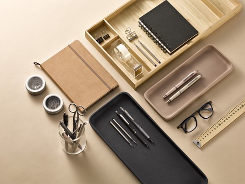 De FriXion Zone heeft een discreet en minimalistisch ontwerp, met een metalen V-vormige ring ter ondersteuning van het maken van al je notities of lijstjes op het werk.