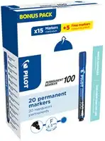 Viltstift PILOT 100 rond fijn blauw doos à 15+5 gratis