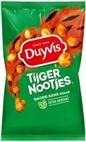 Duyvis tijgernootjes bacon kaas zijn heerlijke pinda’s met een uniek dubbel-krokant jasje in een heerlijke bacon- en kaassmaak. En dat zonder kunstmatige kleurstoffen. Ze zijn dus dubbel zo lekker! Deze super krokante nootjes zijn perfect voor op de borrel.