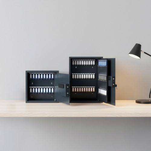 Deze hoogwaardige sleutelkast voor 100 sleutels combineert het hoogste beveiligingsniveau met een uitstekende sleutelorganisatie.