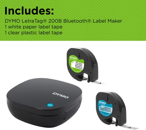 Druk veel verschillende typen en kleuren labels rechtstreeks vanaf uw smartphone of tablet af met de DYMO LetraTag 200B-labelprinter met bluetooth.