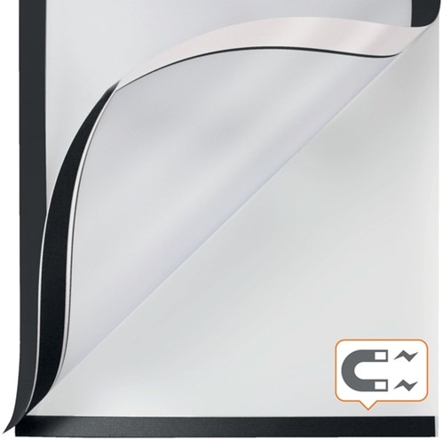 Magnetisch kader met zelfklevende achterkant voor het eenvoudig ophangen van posters en andere informatie. Het magnetische kader is voorzien van een magneetstrip aan de onderkant van het kader zodat de inhoud snel en gemakkelijk kan worden gewisseld en de pagina's er niet uitvallen. Dit magnetische kader hecht stevig op vlakke oppervlakken, zowel staand als liggend door de zelfklevende achterzijde en kan dubbelzijdig worden gebruikt op een glasoppervlak. De transparante matte hoes helpt de inhoud te beschermen en kan eenvoudig worden schoongeveegd. Formaat A4.