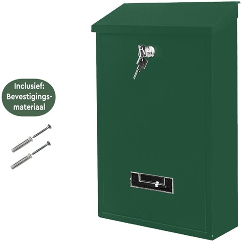 De BRASQ PB100 Basic is een betrouwbare en strak vormgegeven wandbrievenbus in stijlvol groen. Gemaakt van duurzaam metaal en ontworpen voor dagelijks gebruik, biedt deze brievenbus een veilige en praktische oplossing voor al je post. Met het tijdloze design past hij moeiteloos bij elke gevel. De ruime opening en handige inworp zorgen voor optimaal gebruiksgemak, terwijl het cilinderslot je post beschermt tegen ongewenste toegang. Beschermd tegen weersinvloeden door gegalvaniseerd en gepoedercoat staal
