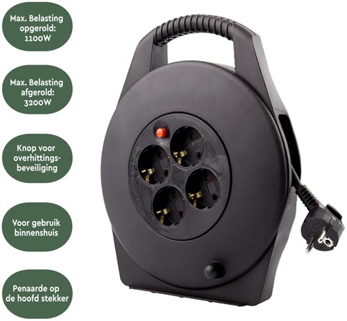 Max. Belasting opgerold: 1100W Max. Belasting uitgerold: 3200W