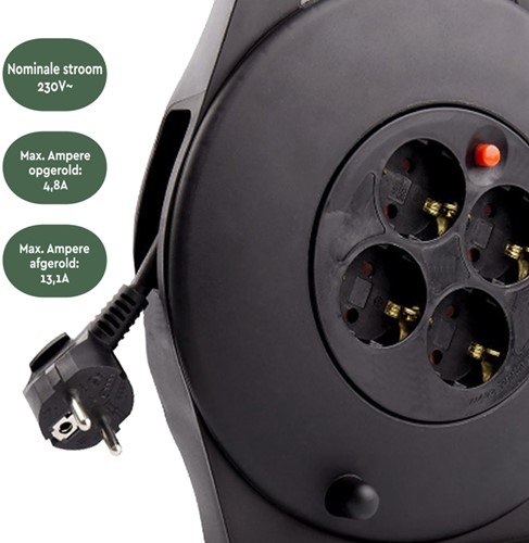 Max. Ampere opgerold: 4,8A Max. Ampere uitgerold: 13,1A