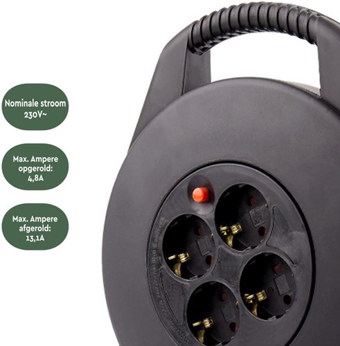 Max. Ampere opgerold: 4,8A Max. Ampere uitgerold: 13,1A