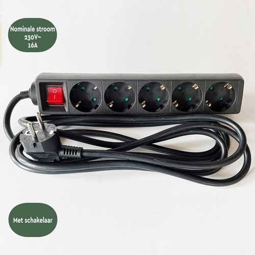 De stekkerdoos met schakelaar voldoet aan alle veiligheidseisen die betrekking hebben op dit product. Hij is voorzien van een ROHS, TUV GS en CE certificaat.