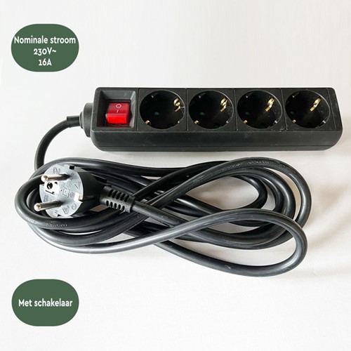 De stekkerdoos met schakelaar voldoet aan alle veiligheidseisen die betrekking hebben op dit product. Hij is voorzien van een ROHS, TUV GS en CE certificaat.
