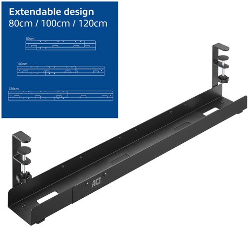 Deze kabelgoot is eenvoudig verstelbaar en aan te passen aan de gewenste breedte: 80, 100 of 120 centimeter.