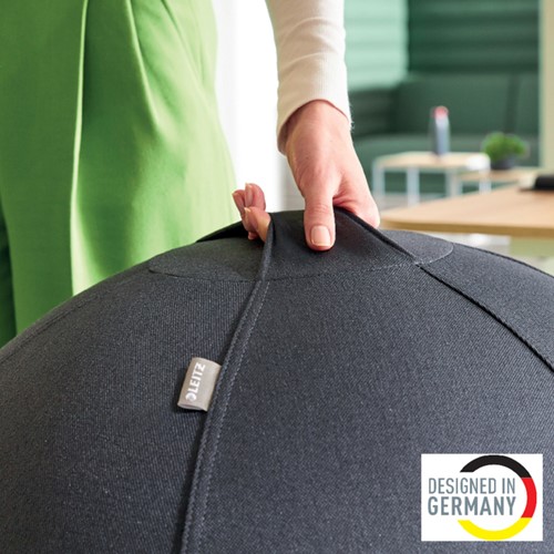 Blijf in beweging terwijl je werkt met de Leitz Actieve Zitbal. Dit ergonomische en stijlvolle zitmeubel verbetert je houding en helpt rugpijn te verminderen. Dankzij het anti-rol design blijft de bal stabiel wanneer je hem niet gebruikt, en de verzwaarde onderkant voorkomt wegrollen. Ideaal als afwisseling met een bureaustoel om je actieve werkhouding te bevorderen. Met een diameter van 55cm is deze zitbal perfect voor mensen tussen 1,35 en 1,55 meter lang en ondersteunt hij tot 120kg. De minimalistische en moderne uitstraling past moeiteloos in elke werkomgeving. De bal is eenvoudig op te blazen met de meegeleverde handpomp en voorzien van een afneembare, wasbare stoffen hoes. Creëer een dynamische en gezonde werkplek met de Leitz zitbal.
