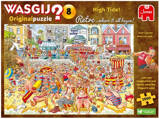 Frisse lucht, zonneschijn en het geruis van de zee... Wat is een dagje op het strand toch heerlijk rustgevend! Maar is die rust niet eigenlijk stilte voor de storm? Probeer je voor te stellen dat je de strandwacht bent; wat hij kan zien is de afbeelding die jij moet leggen. Deze Wasgij legpuzzels van Jumbo zijn speciaal ontwikkelt voor volwassenen. Anders dan bij andere puzzels, maak je bij Wasgij niet een afbeelding van de doos na maar moet je zelf je fantasie gebruiken om de puzzelplaat compleet te maken! Er zijn drie verschillende concepten: Original, Mystery en Destiny. Bij Wasgij Original moet je de hints en je fantasie gebruiken om er achter te komen waar één van de personen in de afgebeelde scene op de doos naar kijkt.