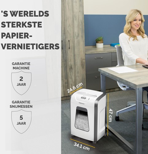 19 liter uitneembare opvangbak – ongeveer 250vel vernietigd papier.