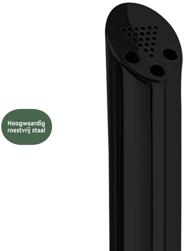 De fraaie staande asbak van BRASQ draagt bij aan een schone en opgeruimde omgeving als het gaat om sigaretten of sigaren peuken. Deze rookpaal, of peukenzuil, heeft een luxueuze en moderne uitstraling en is gemaakt van geborsteld hoogwaardig RVS (Stainless Steel 304). Door de hoge mate van corrosiebestendigheid van dit materiaal kan hij weer en wind doorstaan. Met een hoogte van 92cm, en een doorsnede van 17 cm aan de onderkant en 8 cm aan de bovenkant, staat hij nooit in de weg. De BRASQ AT300 heeft een handig uitdrukvak om de sigaret te doven en 3 gaten om de peuk te deponeren.