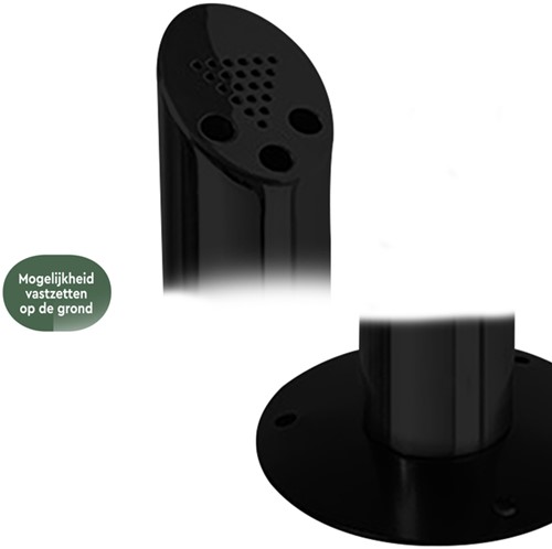 De zuil is zeer eenvoudig te legen. De staande asbak van BRASQ vangt de peuken op in het onderste gedeelte van de kolom. Door deze constructie, is er een beperkte zuurstof toevoer en doven de peuken snel. Dit komt de veiligheid van gebruiker en omgeving ten goede. Door het klepje onderaan met de sleutel te openen kun je de inhoud gemakkelijk legen. Sluit de asbak vervolgens weer met de sleutel. Tot slot, de asbak is geschikt voor iedereen die op een professionele wijze de sigarettenpeuken wilt opvangen, waardoor de werk- en leefomgeving opgeruimd en schoon blijft.